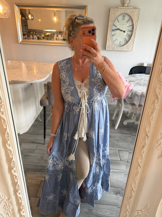 Netta sleeveless open dress with tassel ties