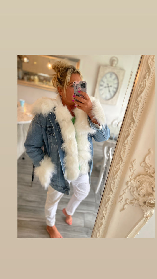 Denny Denim Hooded Jacket with Faux Fur Trim