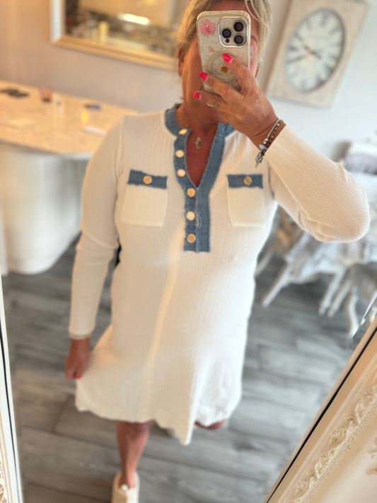 Scarlett Dress with denim trim