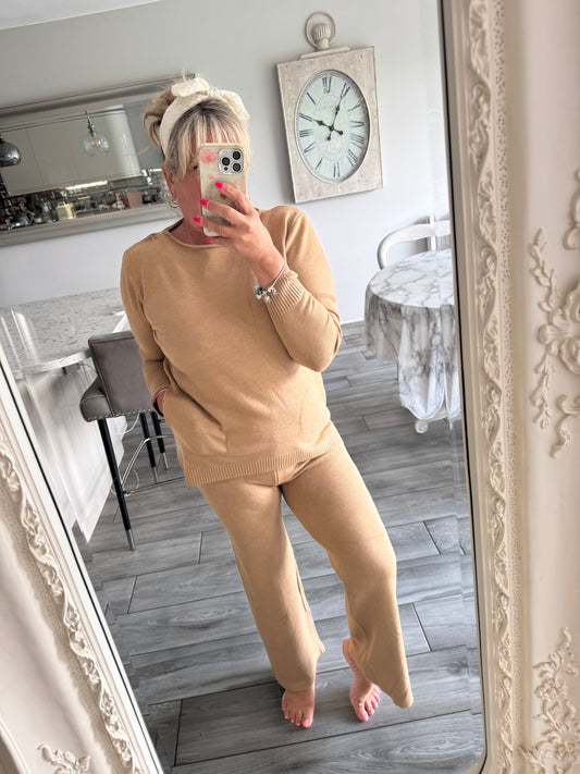 Ivy wine colour wide trouser leg set with flower detachable brooch