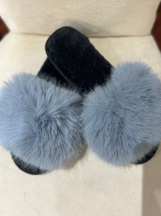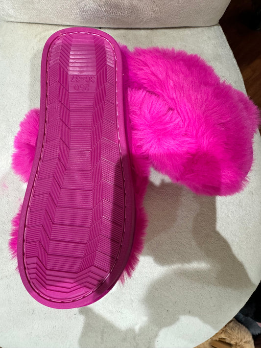 Criss cross Indoor outdoor fluffy faux fur slippers