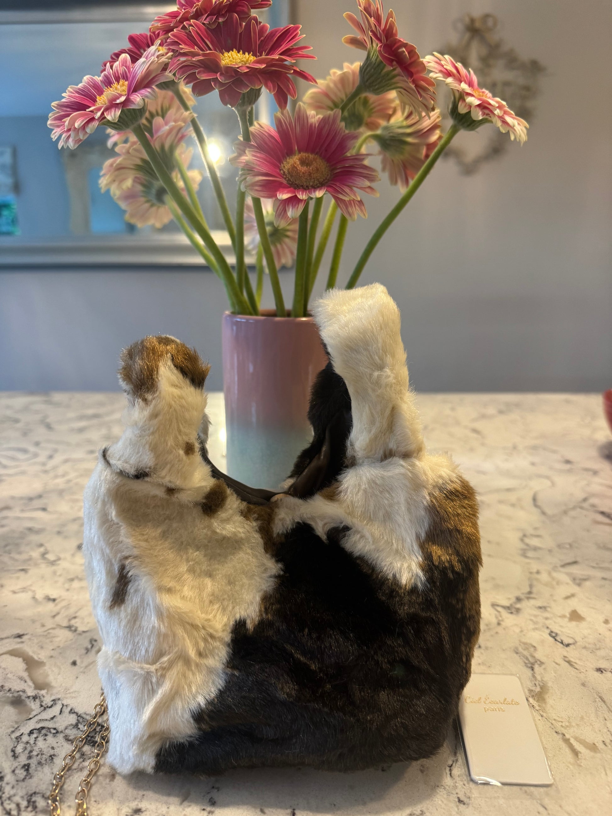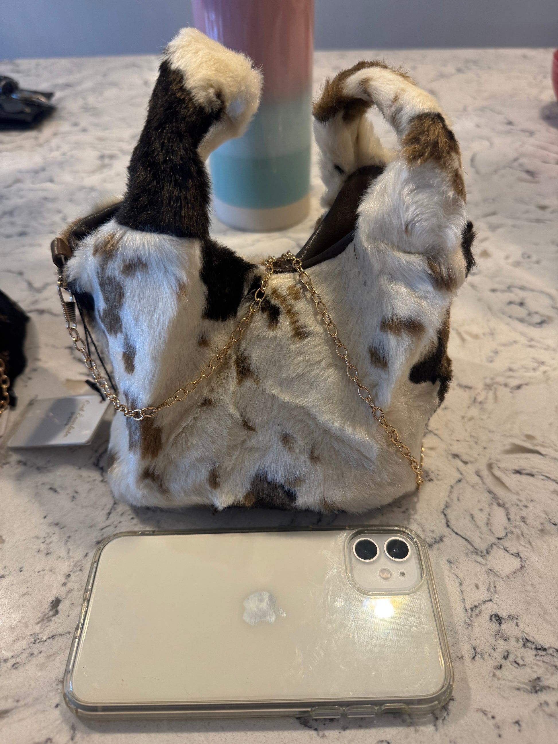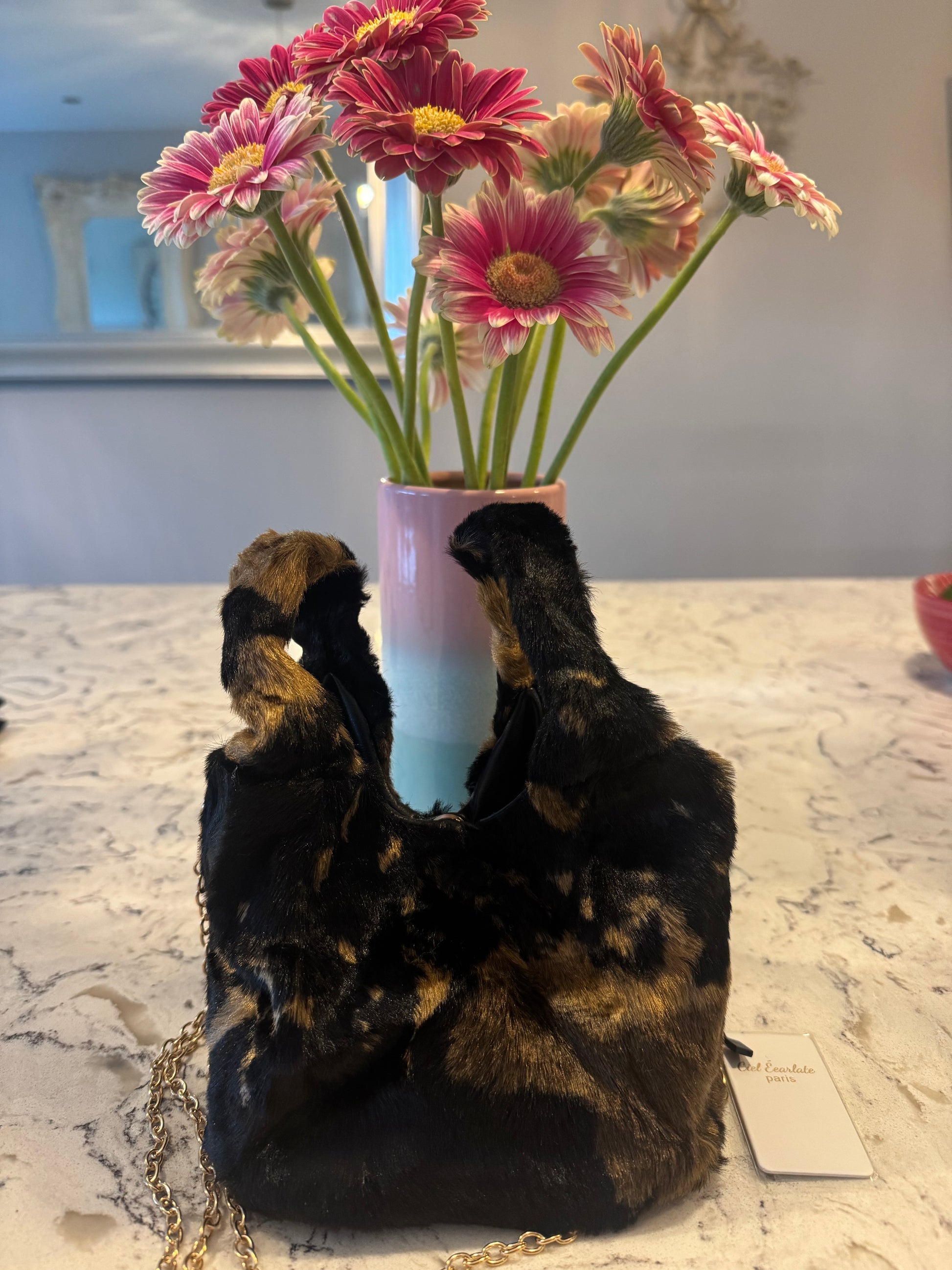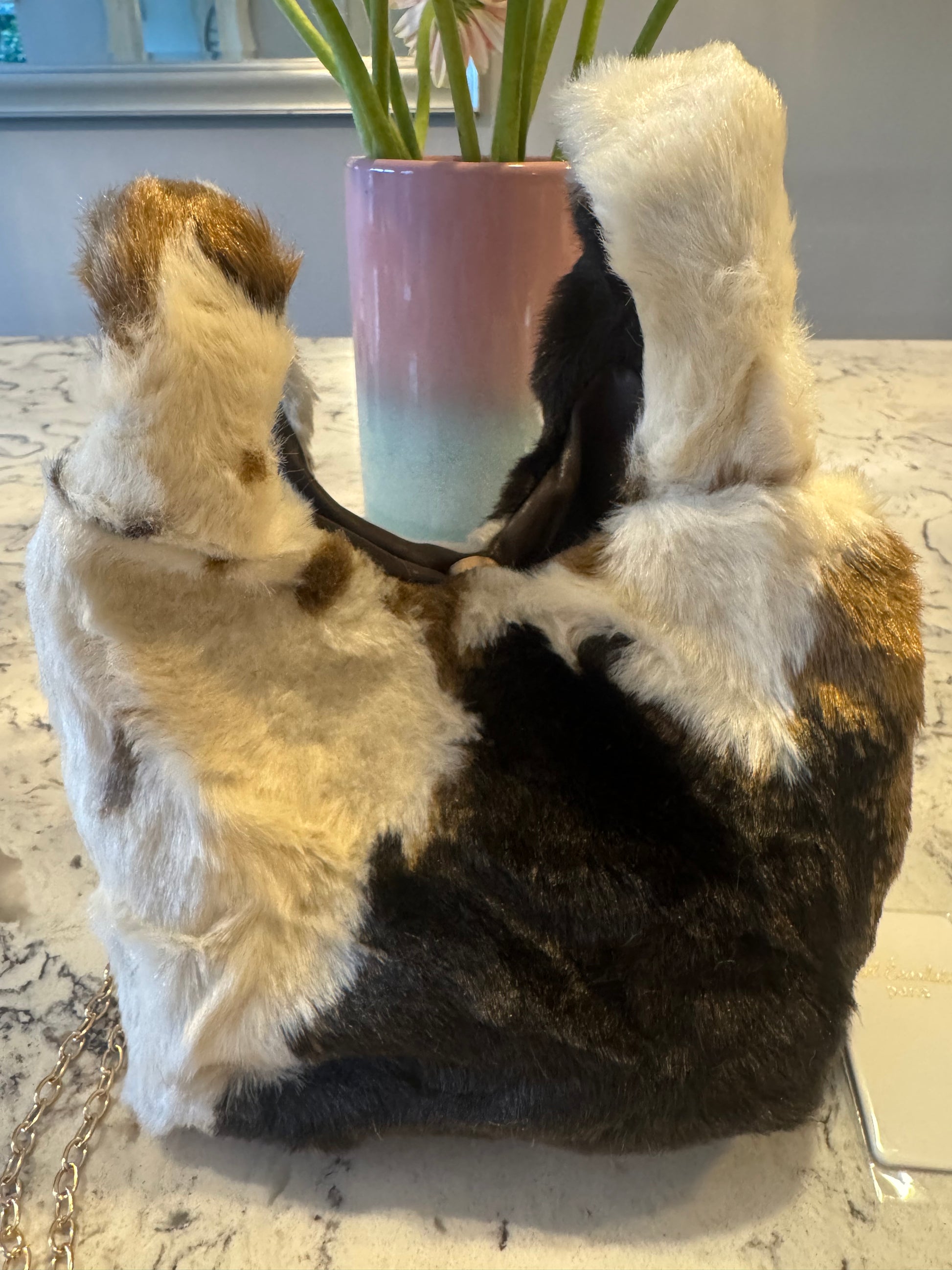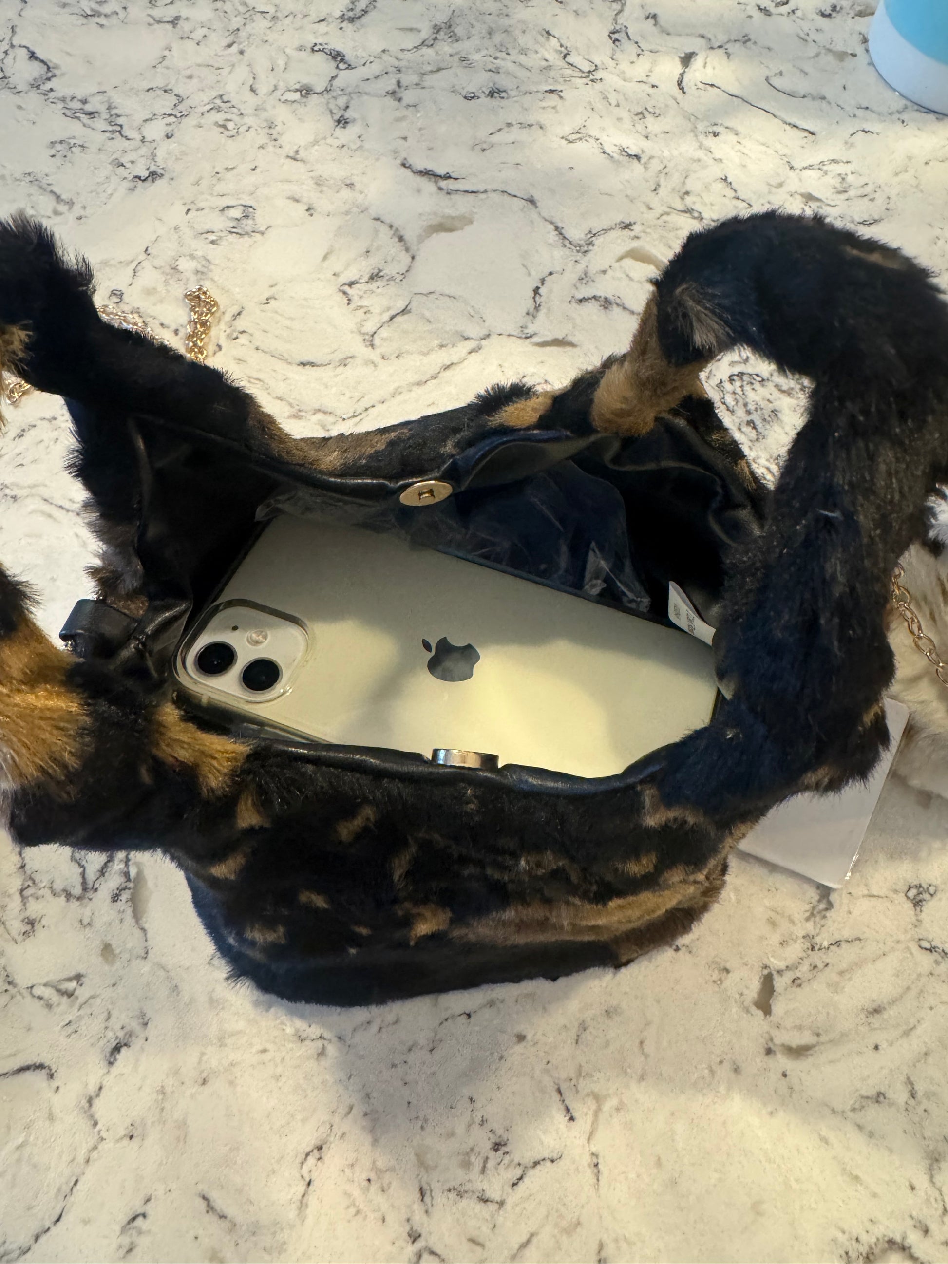 Dionne small flat faux fur bag with gold chain shoulder strap