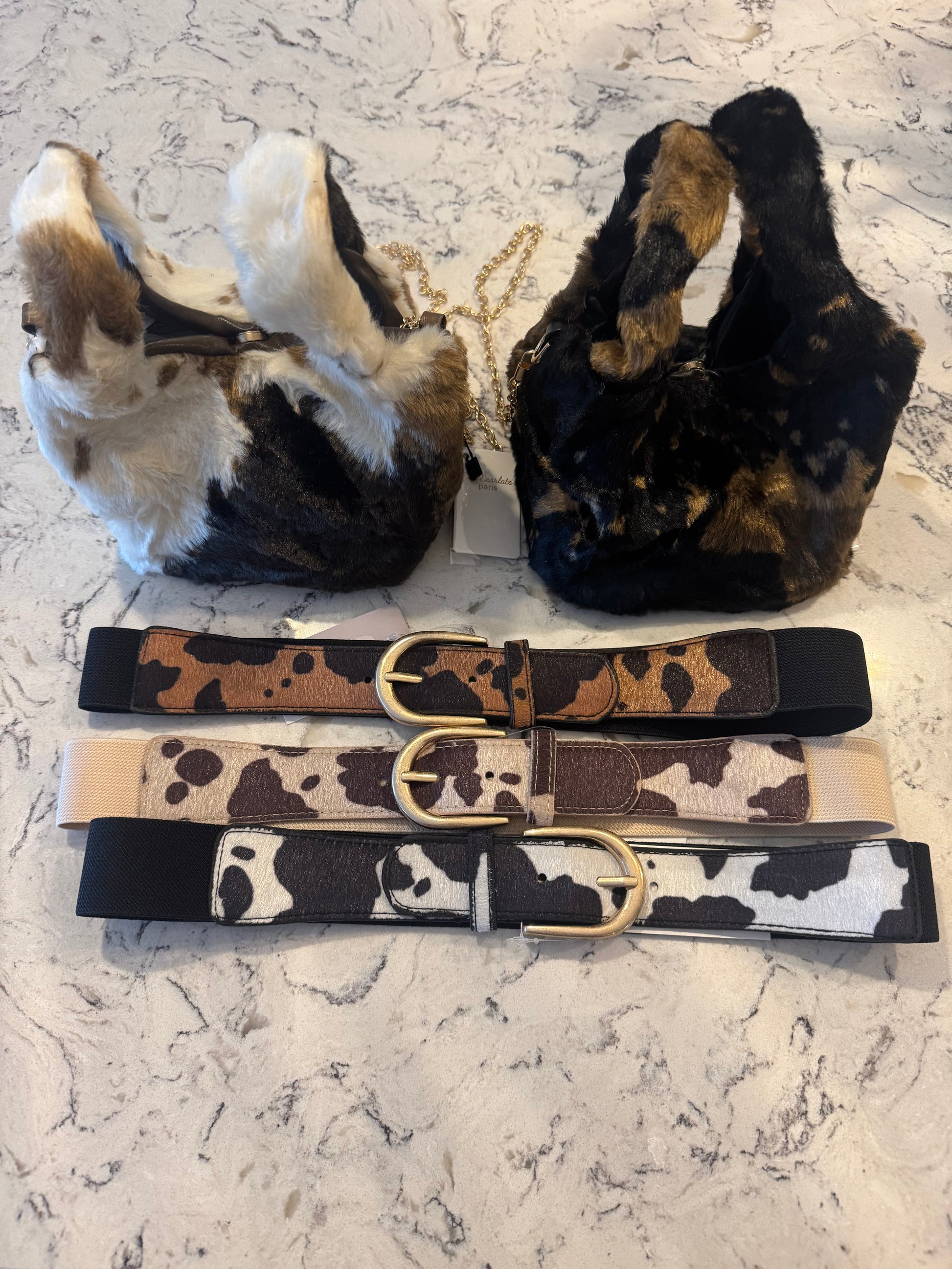 The Dionne small flat faux fur bag is a stylish and versatile accessory, perfect for any occasion. Featuring a luxurious faux fur exterior and a sleek gold chain shoulder strap, this bag is both chic and functional. With its compact size and elegant design, it's the perfect accessory to elevate any outfit.