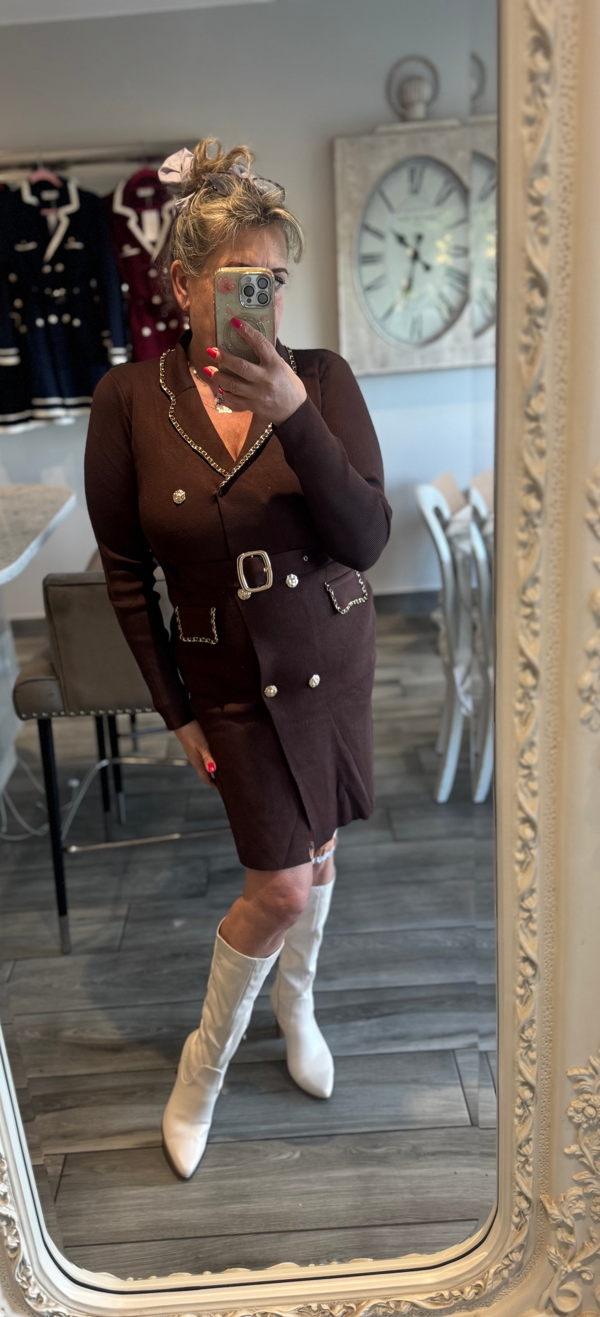 Ella smart short dress gold chanelesque chain detail