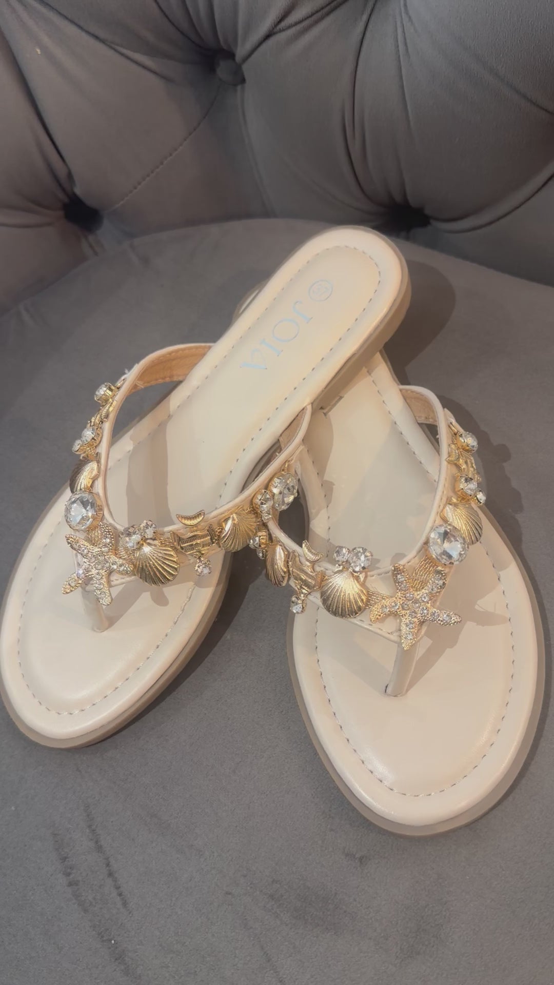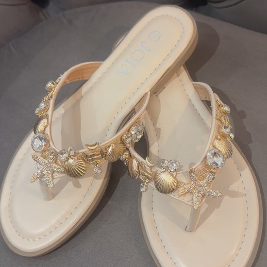 Madrid pretty flip flops gold embellish charms
