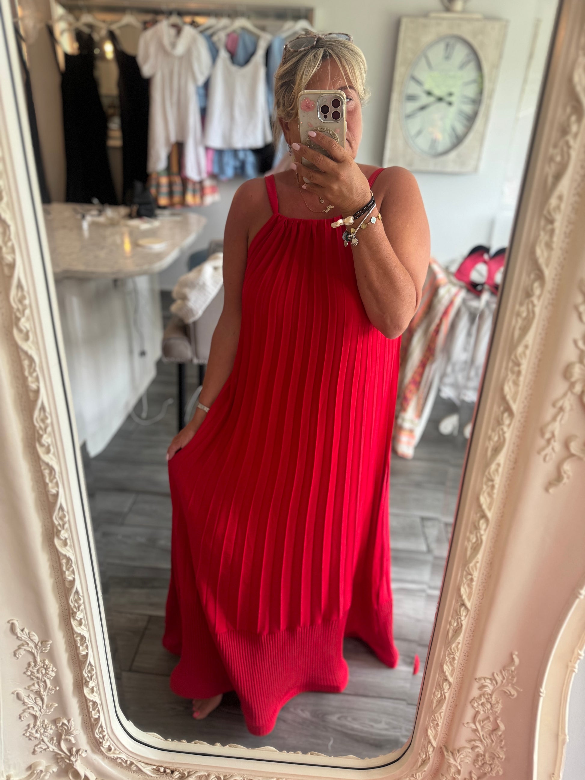 This stunning Vienna maxi plisse dress is the perfect addition to any wardrobe. Crafted with expertly crafted plisse fabric, it offers a luxurious feel and elegant flow. With its versatile design, this dress is perfect for any occasion. Elevate your style with the Vienna maxi plisse dress.